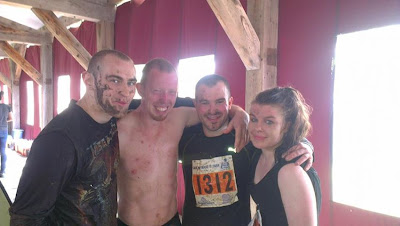I would literally have to be blind to not see all the men who were walking around topless. I would like to say thank you on behalf of my eyes and I think I had to pop them back into their sockets a few times but kudos to you guys, I really, really liked what I saw. The stewards that were dotted about the course were also a great source of entertainment, encouragement and help! I would like to be friends with the girl who was shouting "THIS ISN'T THE WOMEN'S MINI-MARATHON!" at the very beginning. A huge thanks to the steward who gave me a boost on one of the obstacles at the end because there was no one else about to help, he got his hands filthy from my runners and had to deal with my muddy ass in his face, a real prince! As I was making my way through the slithering little forest trails where every tentative foot you placed on the slippy ground had the potential of landing you on your face, there was one woman in purple who was shouting encouragement at everyone. Didn't matter who you were she was gonna encourage you! It's these people who embody what events like this are all about, camaraderie. It's this feeling of alliance that make people feel a part of something, where everyone is connected and it creates a sense of belonging. If everyone was out to get the best possible time and were trying to undermine and overtake people constantly, it wouldn't be the same and these events wouldn't be as popular as they are. I doubt you'd strip bare ass naked and start wiping the mud out of every orifice if you were put in a shed a week ago with a few hundred women and men you didn't know but share the same experience like running a gruelling 12km obstacle course and we're all best naked friends.